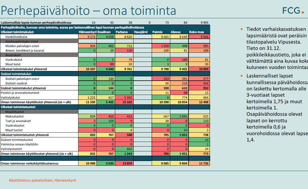 Perhepäivähoidon laskennalliset kustannukset lasta kohden